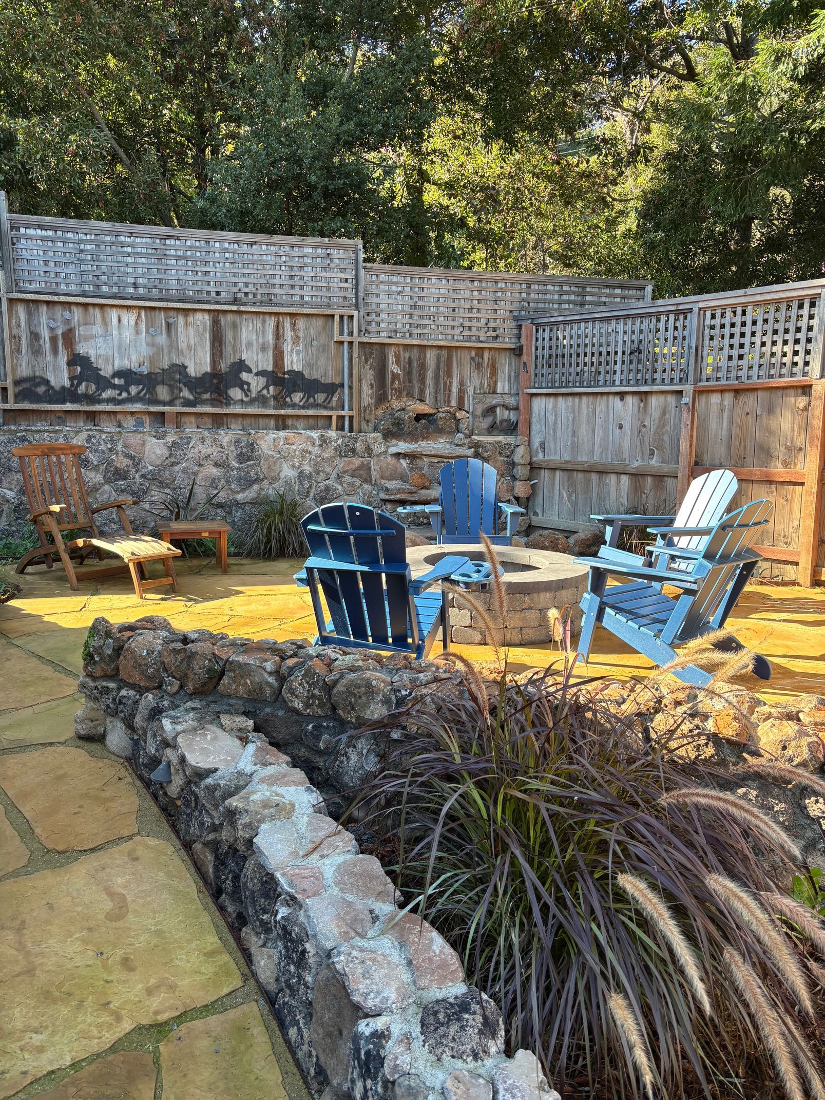 The Bay Cottage is an exclusive two-bedroom retreat featuring a fully equipped kitchen, a cozy living room with a gas fireplace, and a dining area with a daybed. The master bedroom boasts a King bed, a gas fireplace, and elegant French doors that open onto the beautiful back flagstone patio. The second bedroom is furnished with a King bed and offers a private bathroom. Embrace the outdoors in your serene private patio nestled among the trees.