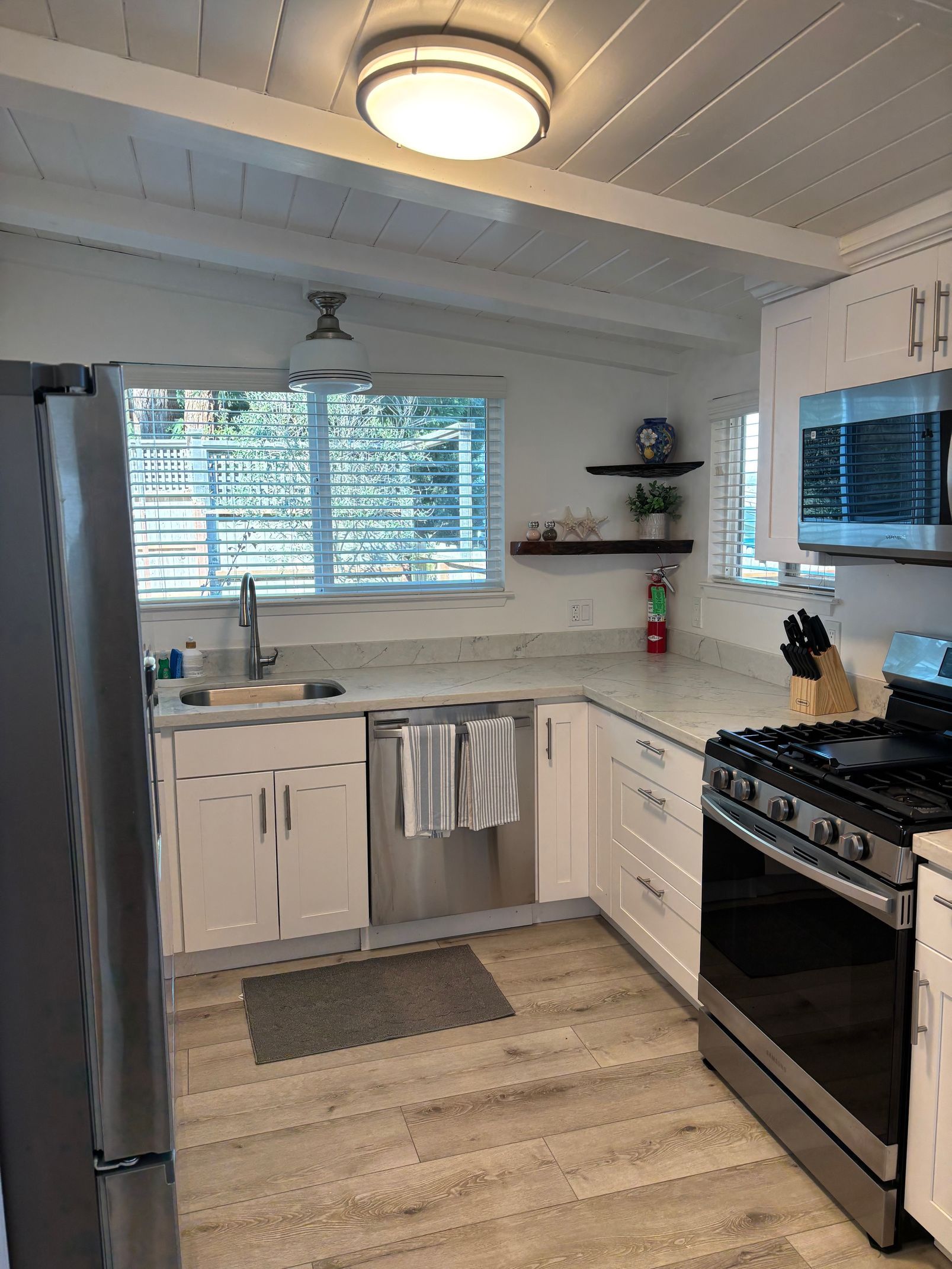 This deluxe accommodation is fit for the Captain of the Ship! You'll enjoy a comfy king bed, full kitchen, dining room, and a living room area with breathtaking views of Tomales Bay. Enjoy the fireplace or flat screen TV while you put your feet up and enjoy this one-of-a-kind suite.
