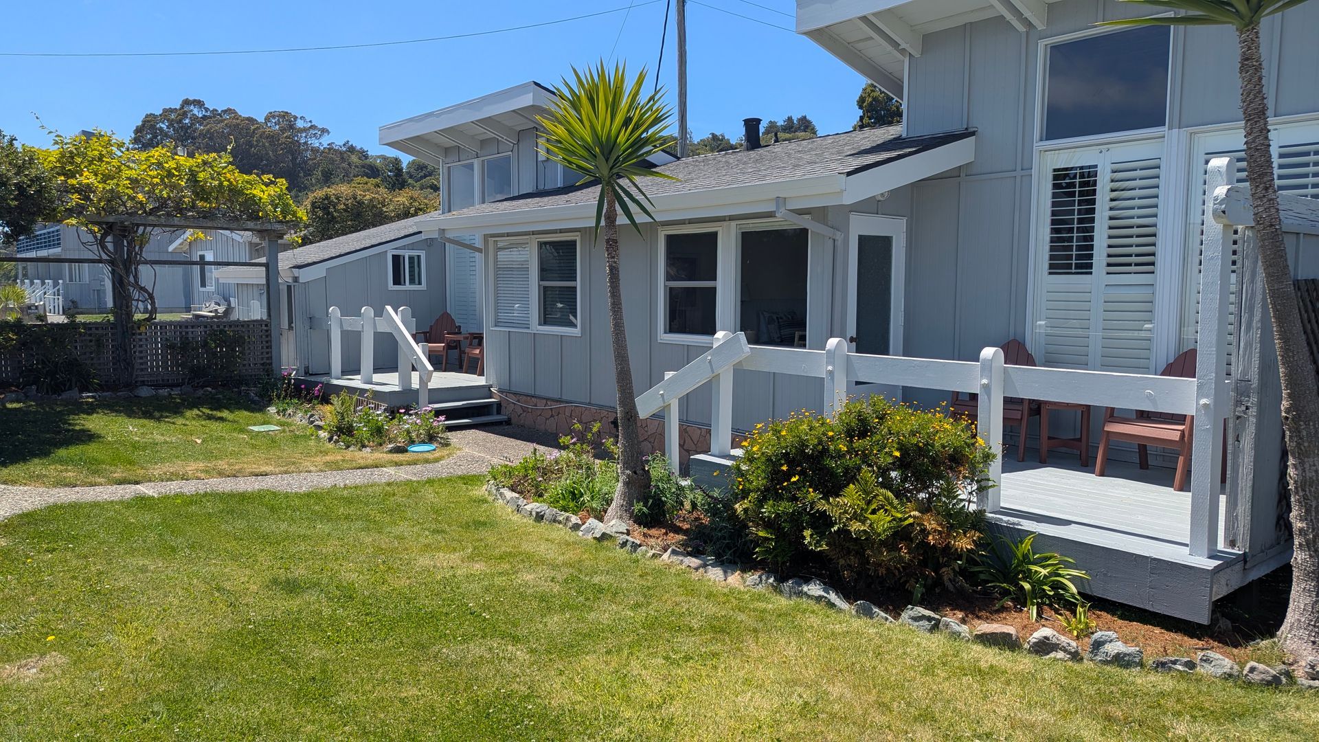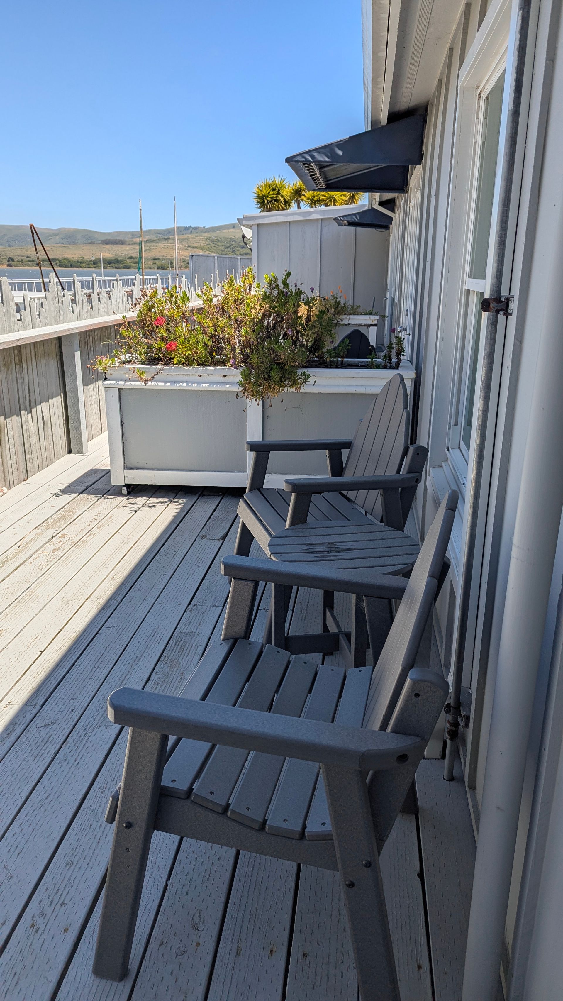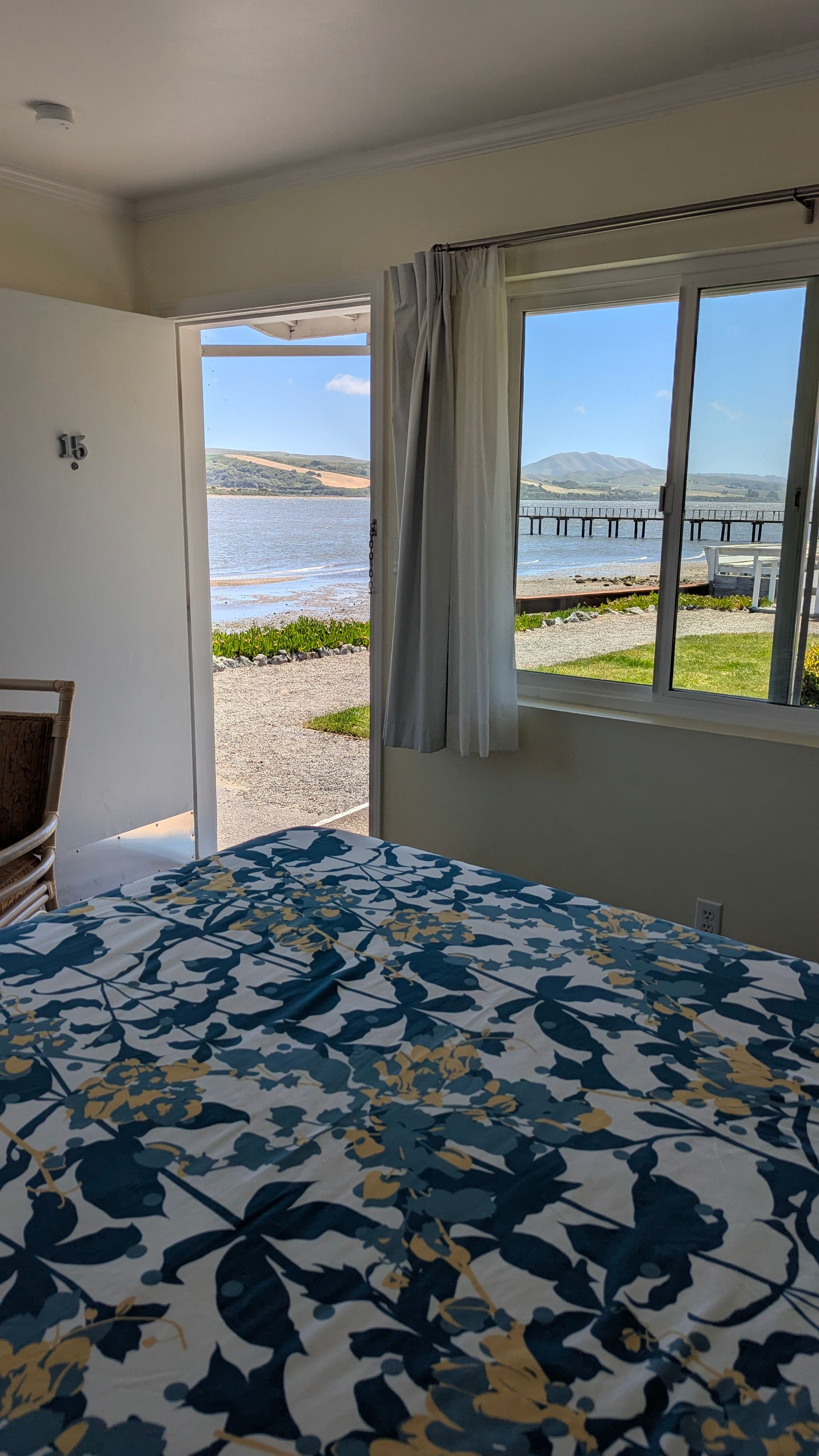 The Harbor View Bungalows Rooms all have stunning views of Tomales Bay and the marina. Room #11 has a queen bad as well as a kitchenette and is a great option for longer stays. Rooms #12, #13 and #14 are great for families. Room #12 has two Queen beds. Room #13 has one Queen bed and one Twin day bed, and Room #14 has one King and one Twin day bed. Room #14 is pet-friendly. All of the Harbor View Bungalow rooms have a mini fridge, microwave, indoor table and outdoor seating areas. Rooms #13 and #14 are ADA accessible. Both meet ADA guidelines for wheelchair accessibility for path of travel, recommended bed height and have bathrooms that are equipped with roll-in showers, fold down shower seats, roll-up sinks and ample grab bars throughout.